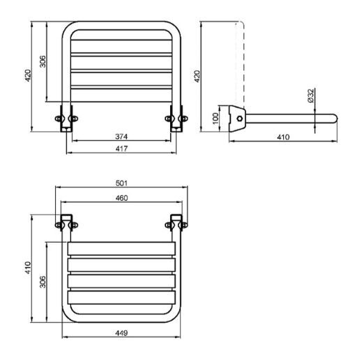 Siddebræt / klapsæde til f.eks. brusenichen med foldeeffekt som gør det nemt for gangbesværede at gå i bad.